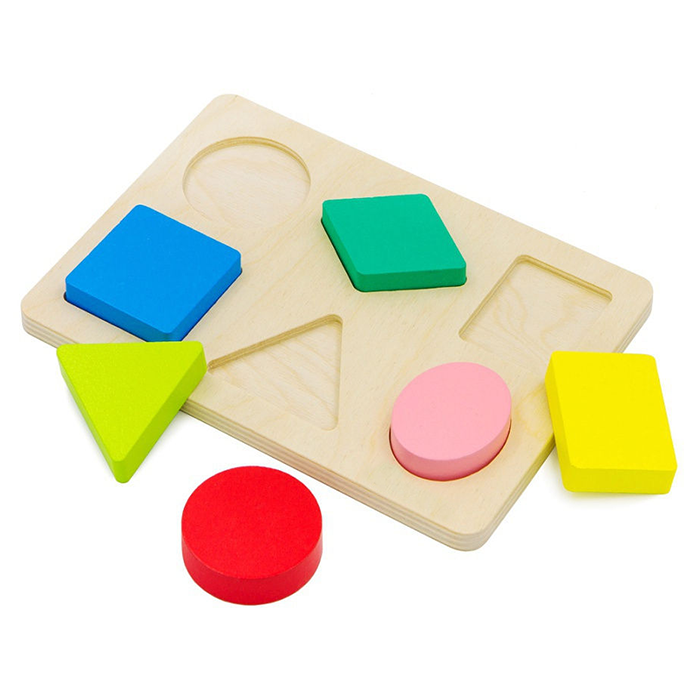 Игрушка сочетает в себе головоломку и традиционную рамку-вкладыш. Возможны различные комбинации элементов и расположения фигур на доске — ребенок выберет интересный вариант для себя.